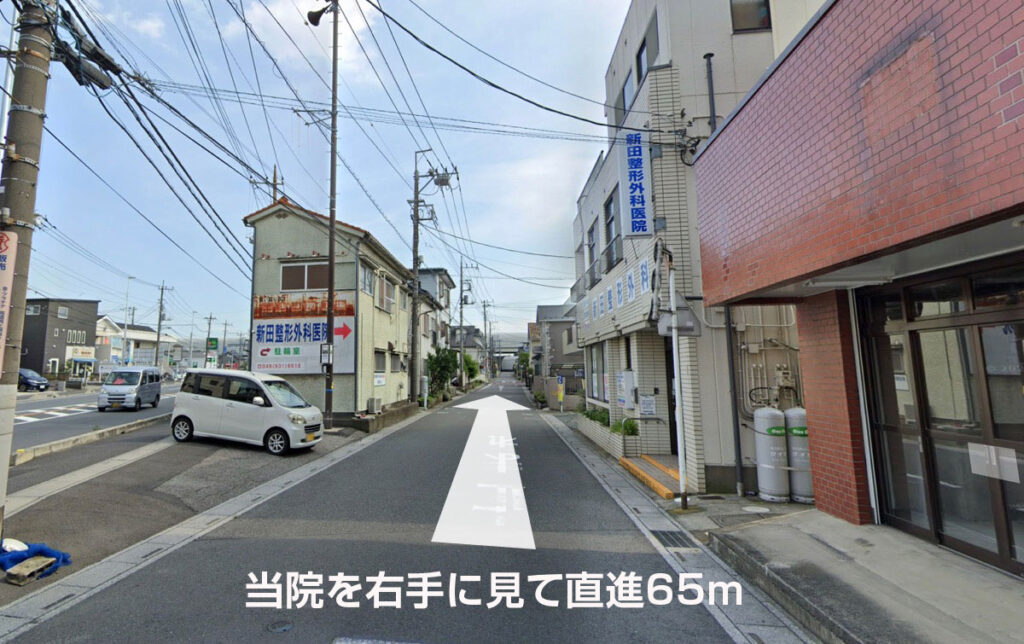 当院を右手に見て、約65m直進してください。